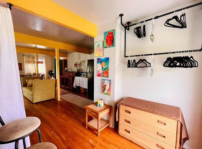 What can I say about this Hostel and the owners? AHHHHHMAZING! We were flying to a Church function in Hilo at the Seventh-Day Adventist Church in Kurtistown and needed a place that will accommodate 6 adults and 6 children. The rooms we had originally booked at Castle Hilo Hotel would have been sufficient for a family of 5, but not too accommodating for 12. Last minute search, and voila! Pele's Hana 'Ana Hostel popped up! I contacted the owner Kimberleigh. She was quick to respond with rooms/dates availability since we were departing Honolulu on Friday, March 24, 2023, for Hilo, with a check-in time of 4 p.m. Our check-out date was Sunday, March 26, 2023, returning home to Honolulu. The second floor (upstairs) sits five (5) bedrooms, common areas (living room with a sectional couch, TV), kitchen, half bathroom, etc. The main suite which is situated on the first floor (main floor) is big enough to accommodate 6-8 people. There are a lot of linens, towels, and not to mention beds. OMG! The pillow-top mattresses made it easy for me to rest! This place does not disappoint! The owners Kimberleigh and Phoenix were hospitable! They made sure we had everything we needed. There is Wi-fi as well. There are smart TVs, fans, and evrything to keep your little ones entertained. One thing though, there is one full bath with a shower on the main floor. So, if you have a big family as I had. Having a shower schedule is very important! :) There is a beautiful Cafe, Da Beans, attached to this lovely Hostel. We didn't have the time to eat there since we already had a full agenda. A big mahalo to you, Kimberleigh for getting your beautiful place ready for my family. The colorful & vibrant fresh flowers, and all the amazing paintings. Thank you, for your hospitality. We will return, and on the next trip, we will eat at the cafe. Mahalo nui loa, The Pou Family from Pearl City, HI